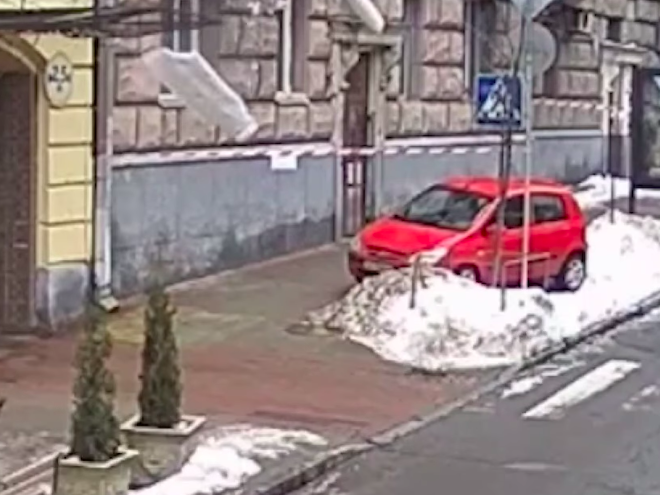 Патрульні, переглянувши відео з камер спостереження, заявили, що приблизно об 11.00 авто дістало пошкодження унаслідок падіння снігу.