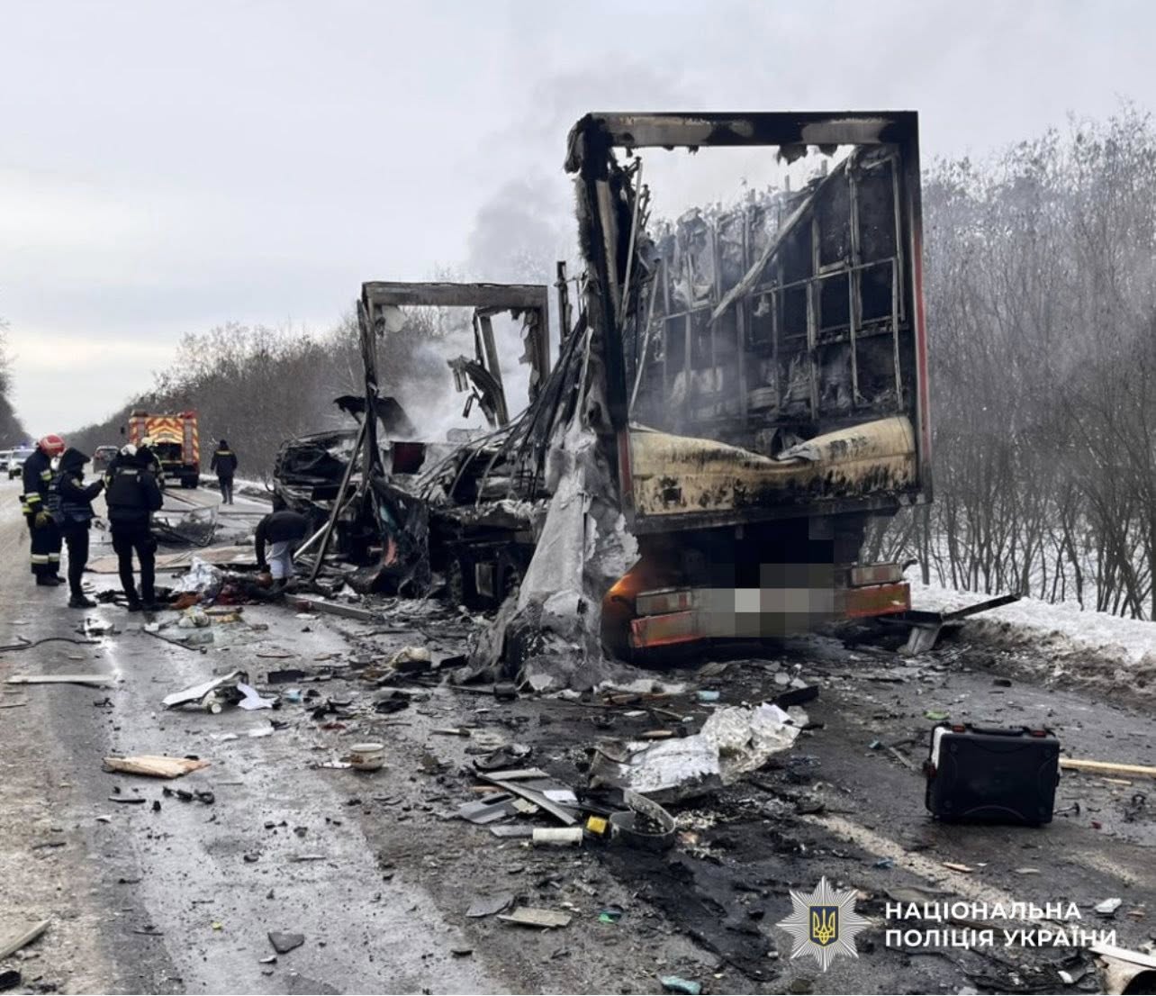 Також у поліції заявили, що після аварії сталося загоряння автопоїзда, в результаті чого транспортний засіб повністю знищив вогонь.