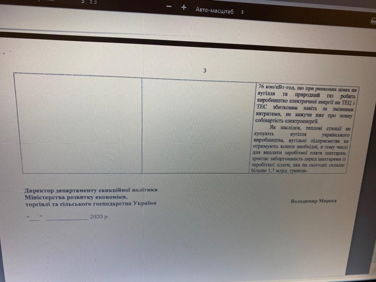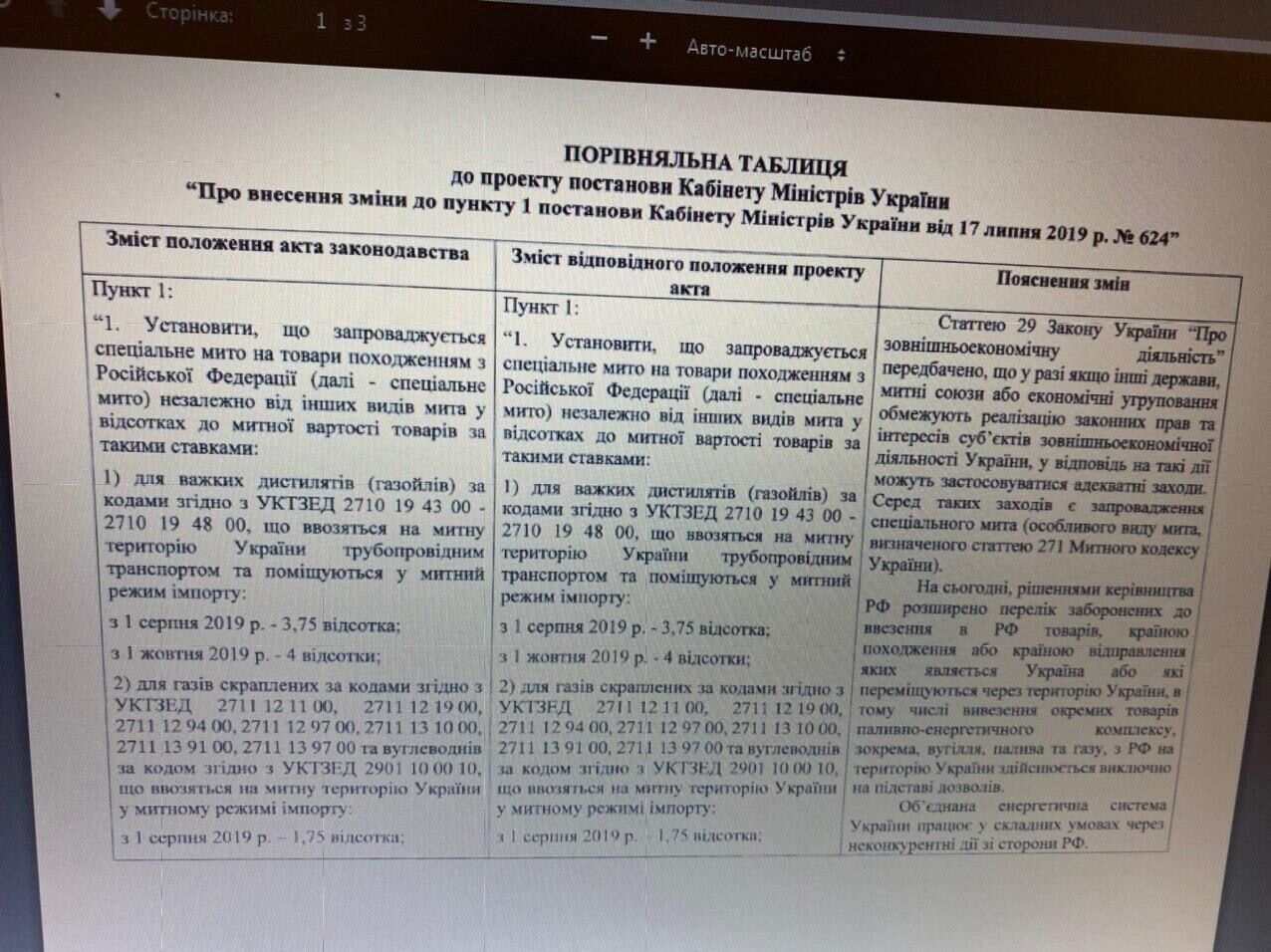 "Проєктом постанови Кабміну України пропонується внести зміни до переліку видів вугілля, щодо яких при імпорті стягується спеціальне мито в розмірі 65%. Пропонується прийняти з доопрацюванням в одноденний термін", – зазначив на засіданні міністр розвитку економіки, торгівлі та сільського господарства Ігор Петрашко.