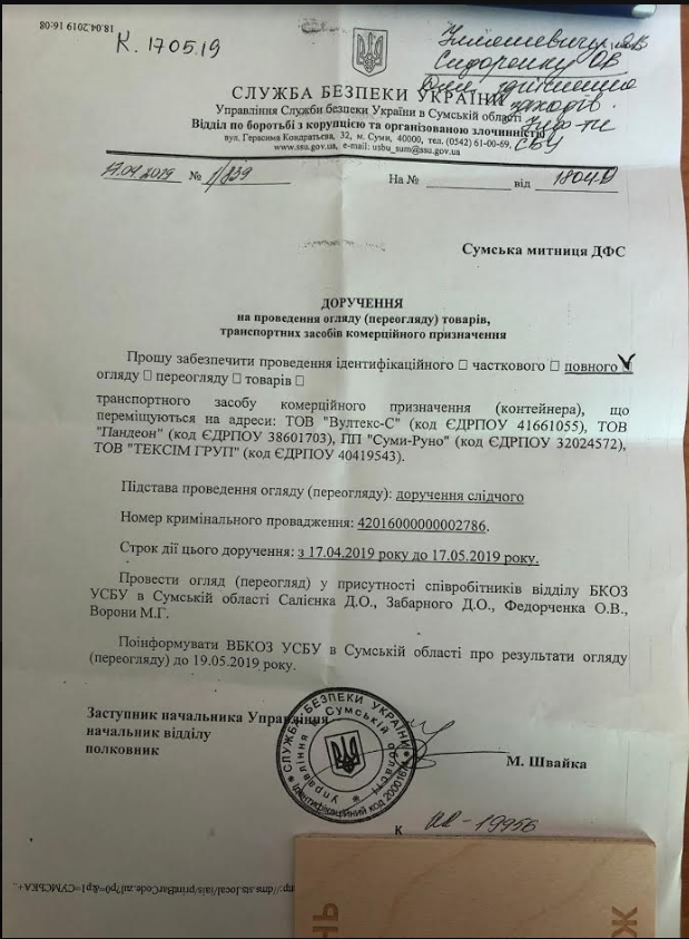 Він додав, що доручення про огляд машин давала і Служба безпеки України, у компанії ознайомилися з ним і з'ясували, що доручення стосувалося кримінального провадження №42016000000002786.