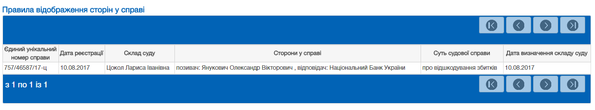Янукович просить Нацбанк відшкодувати збитки. Позов зареєстрували 10 серпня. Суддею, яка розглядатиме питання, визначено Ларису Цокол.