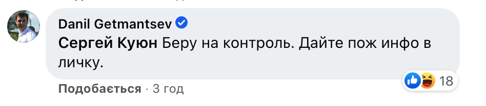 У коментарі під цим повідомленням нардеп від "Слуги народу", голова комітету Верховної Ради з питань фінансів, податкової та митної політики Данило Гетманцев повідомив, що бере питання на особистий контроль.