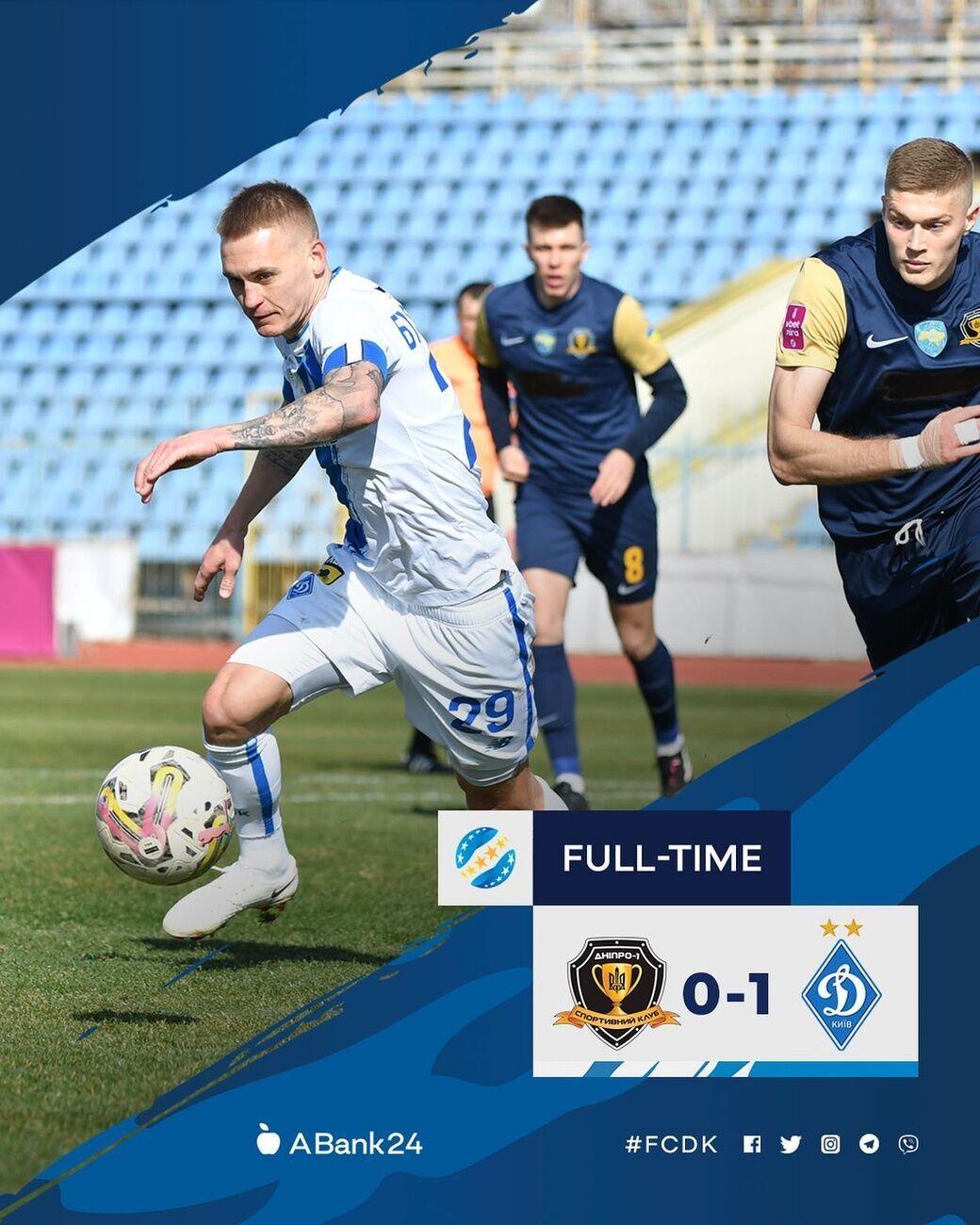 12 березня у центральному матчі 17-го туру української футбольної Прем'єр-ліги (УПЛ) київське "Динамо" обіграло СК "Дніпро-1" із рахунком 1:0. Про це повідомляє сайт УПЛ.