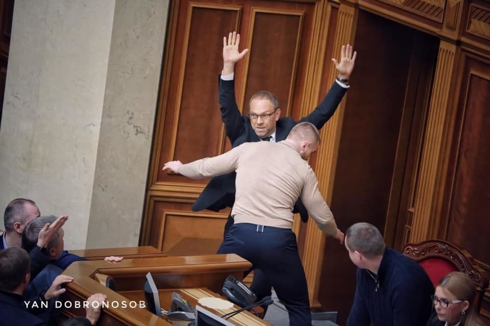 Конфлікт почався з того, що народний депутат від "Батьківщини" Олексій Кучеренко в четвер на засіданні парламенту звернувся до першого віцеспікера Руслана Стефанчука з проханням втихомирити нардепа від "Слуги народу" Артема Дмитрука, який не давав пройти до президії колезі Кучеренка по фракції Сергієві Власенку.
