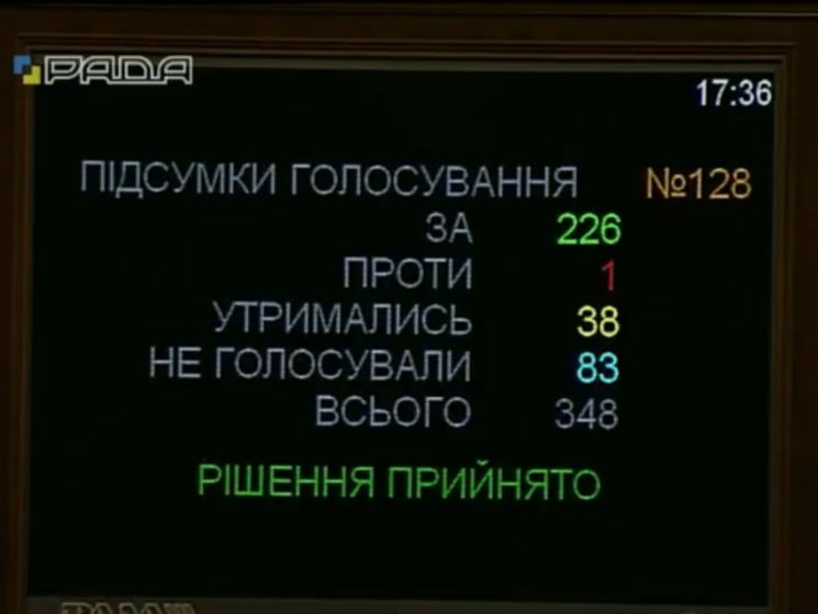 За законопроект проголосувало 226 депутатів.