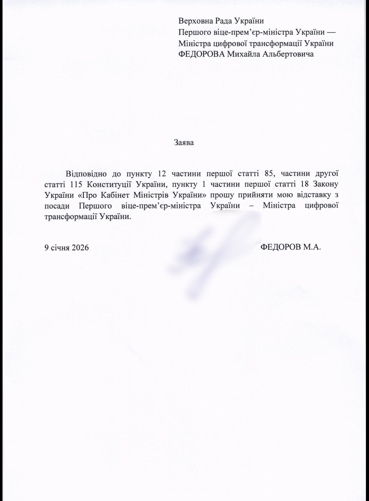 Окрім Шмигаля, заяву про відставку написав і перший віцепрем'єр-міністр – міністр цифрової трансформації Михайло Федоров, зазначив Стефанчук.