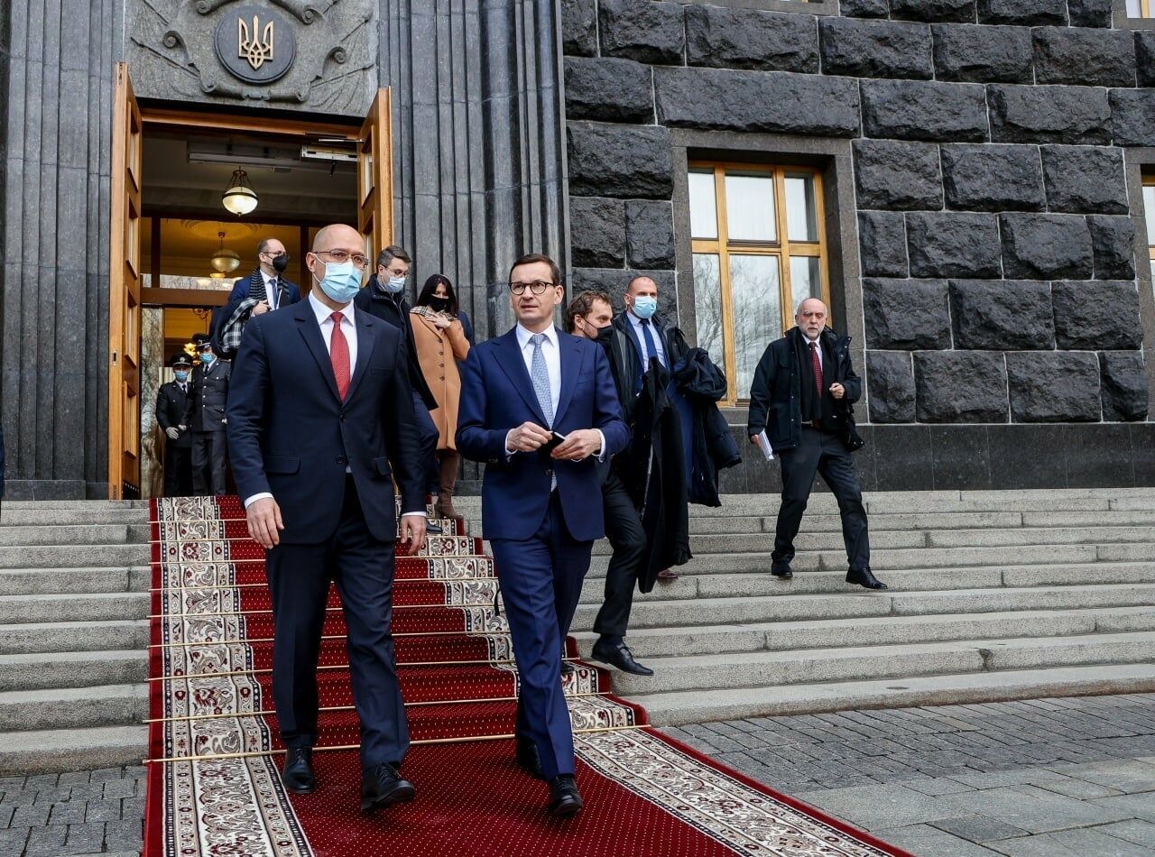 "Наша частина Європи не переживає землетрусів, вибухів вулканів, але що з того? Поряд із таким сусідом, як Росія, складається враження, що ми живемо біля вулкана. І тому як ніхто в Європі ми розуміємо, якою цінністю є безпека, союзи, співробітництво в питаннях безпеки. Таку підтримку, саме в цьому плані, ми хочемо надавати Україні. Ми про таку допомогу для України клопочемо в ЄС, НАТО. Але Польща сама теж готова надавати Україні – у міру наших можливостей – допомогу в газовій сфері, у питаннях обороноздатності держави, стабілізації економіки, але також і гуманітарних питаннях, що, до речі, вже робимо", – заявив Моравецький на пресконференції з прем’єр-міністром України Денисом Шмигалем.