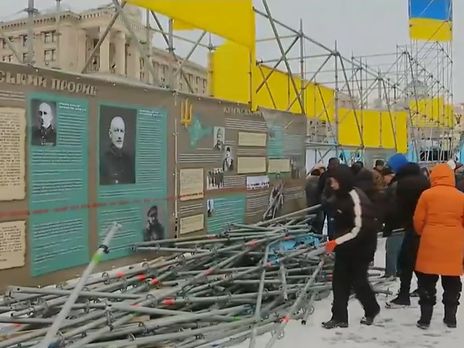 18 березня учасники акції протесту проти президента України Петра Порошенка демонтували на Майдані в Києві металеві конструкції, установлені 3 лютого для заходів до 100-річчя Української революції.