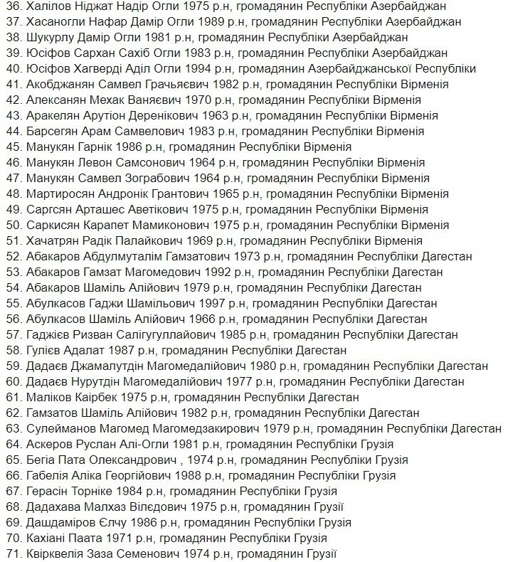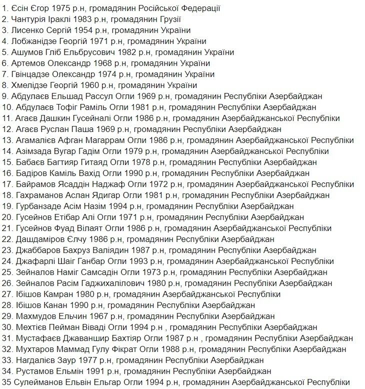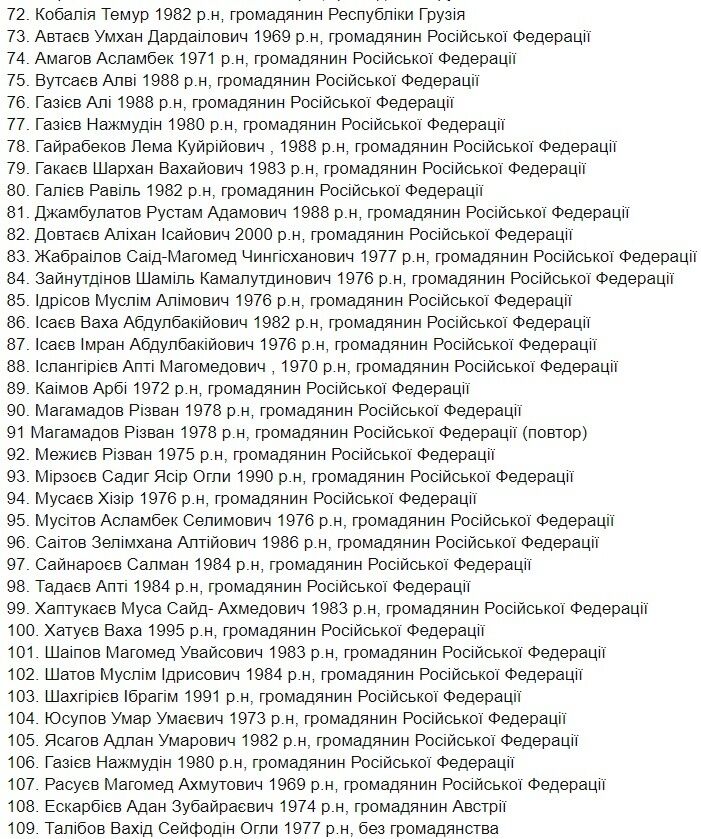 За його даними, ідеться про таких людей (у списку 109 прізвищ):