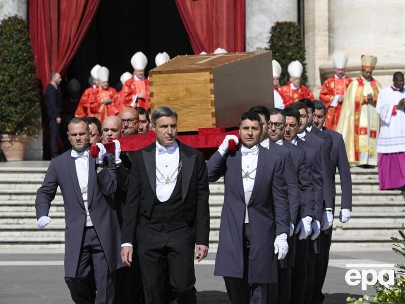 Приблизно о 13.30 тіло понтифіка завантажили на катафалк. У супроводі кортежу мотоциклістів він їде вулицями Ватикану в Рим. Дорогою на узбіччях стоять люди, прощаючись і аплодуючи папі римському.