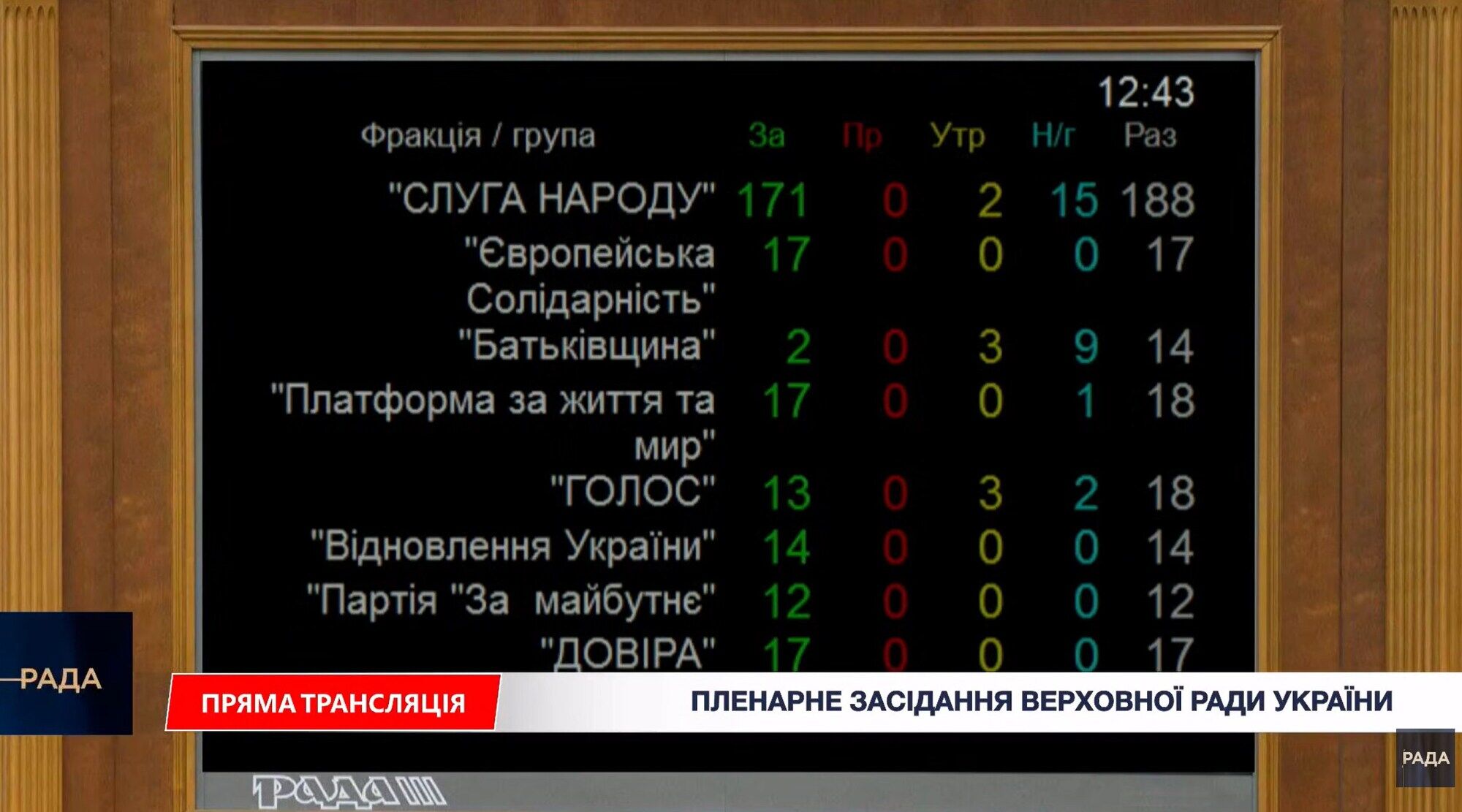 За проголосувало 277 нардепів, утрималося – дев'ятеро, проти не був ніхто.