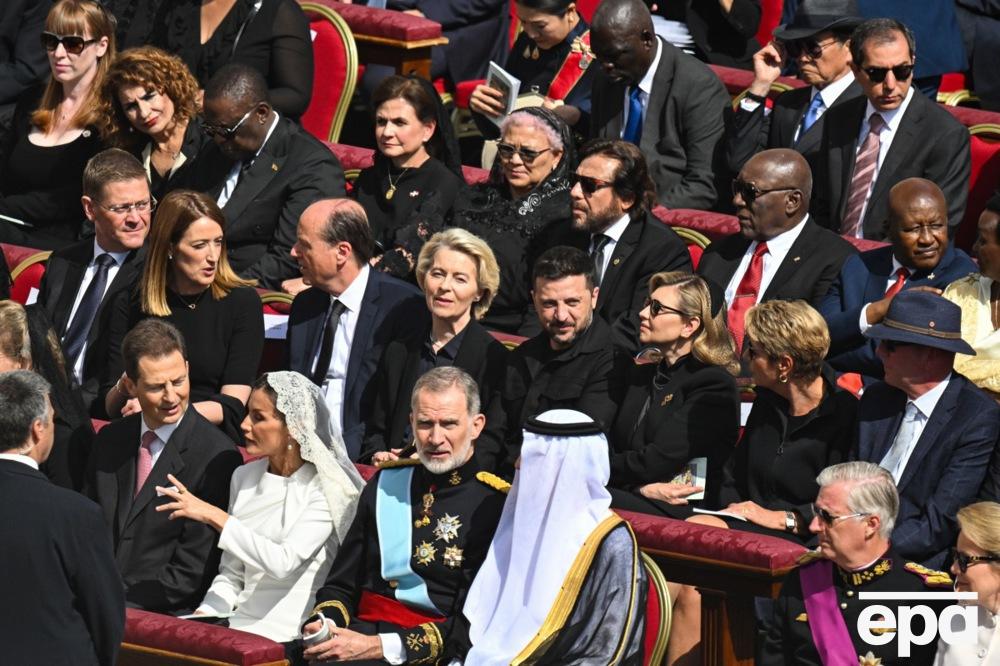 На інших фото можна побачити, що на урочистій літургії на площі Святого Петра Зеленський сидів біля президентки Європейської комісії Урсули фон дер Ляєн.
