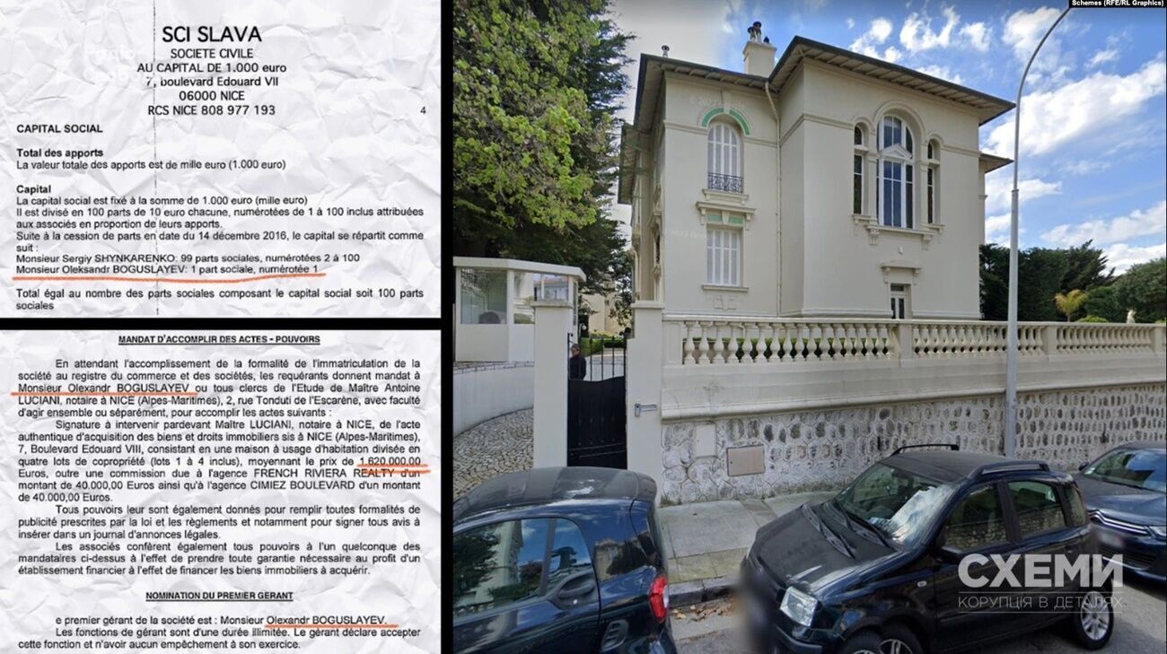 На іншу французьку компанію Sci Slava, якою Олександр Богуслаєв володіє разом із бізнес-партнером Сергієм Шинкаренком, зареєстровано будинок на бульварі Едуарда VIII в Ніцці. Вартість маєтку – €1 млн 620 тис.