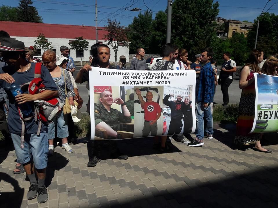 Крім того, учасники акції прикріпили до огорожі фотографії учасників приватної військової компанії, які воюють на Донбасі.