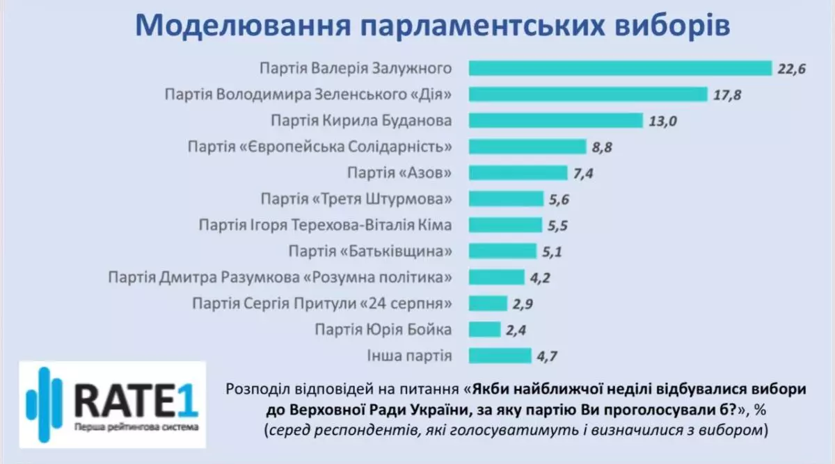 Згідно з результатами дослідження, серед тих, хто визначився зі своїм вибором і планує брати участь у голосуванні, найбільшу підтримку має потенційна партія Валерія Залужного – 22,6%. Друге місце посідає політична сила чинного президента Володимира Зеленського, яку готові підтримати 17,8% респондентів. Третю позицію займає потенційна партія керівника Головного управління розвідки Кирила Буданова з показником 13%.