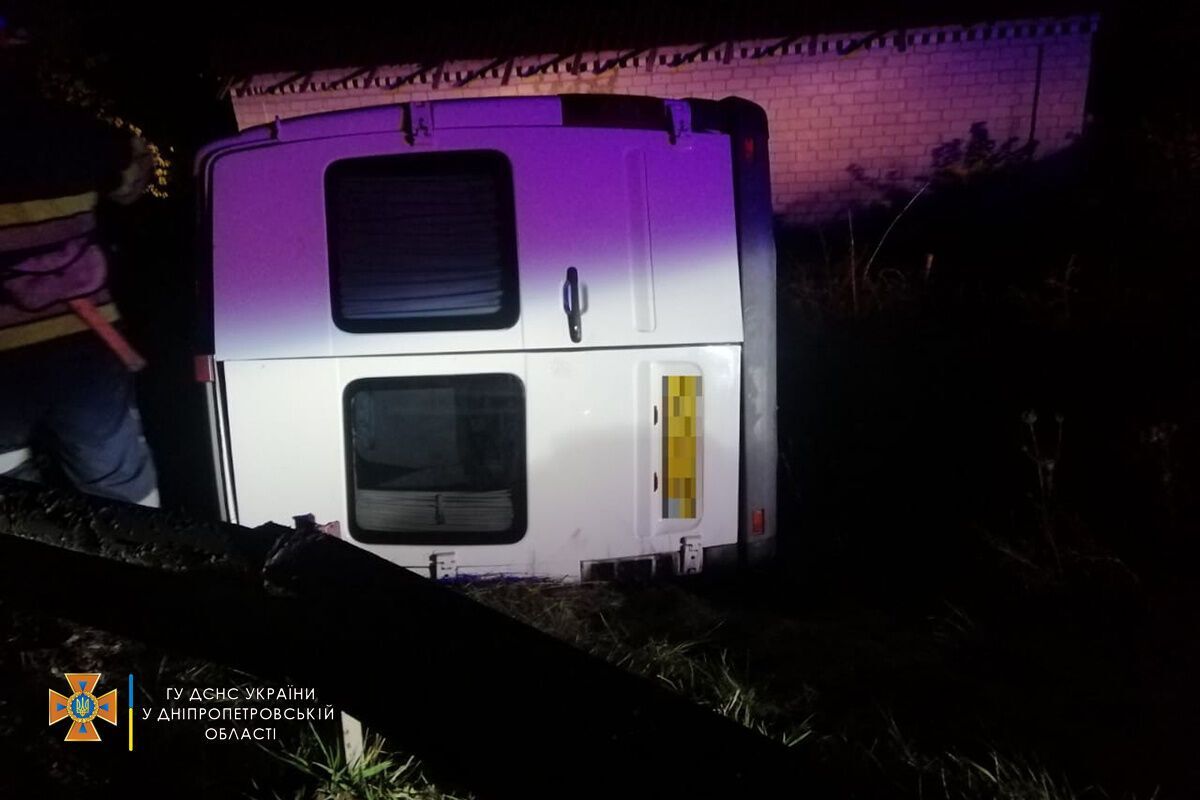 Зазначають, що від удару мікроавтобус з'їхав у кювет і перекинувся набік.