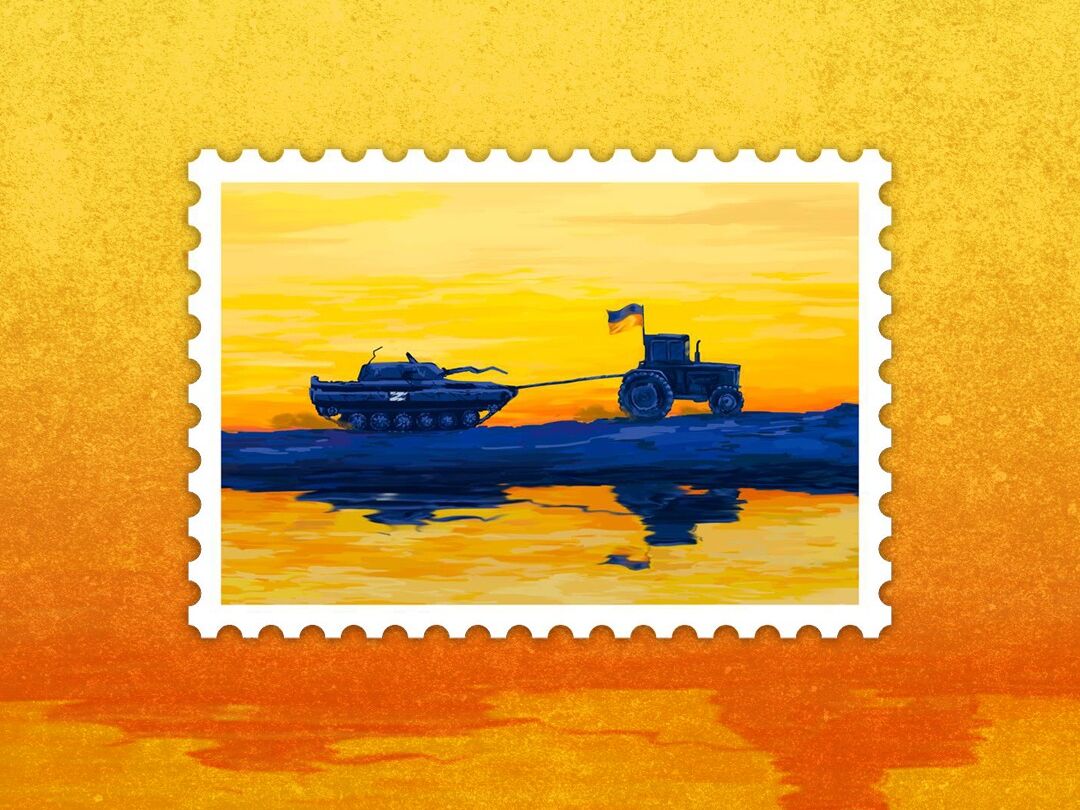 "На поштовій марці "Доброго вечора, ми з України!" відтворено реальні події, які мали місце на Миколаївщині: український трактор тягне покинутий російський танк. Автором ескізу стала дизайнер-графік та викладач живопису Анастасія Бондарець. Нагадаємо, тематику поштової марки було обрано завдяки народному голосуванню. У травні понад 600 тис. українців із-поміж п'яти варіантів обрали саме "Доброго вечора, ми з України!" На конкурс ескізів було надіслано понад 1500 робіт", – повідомили у компанії.