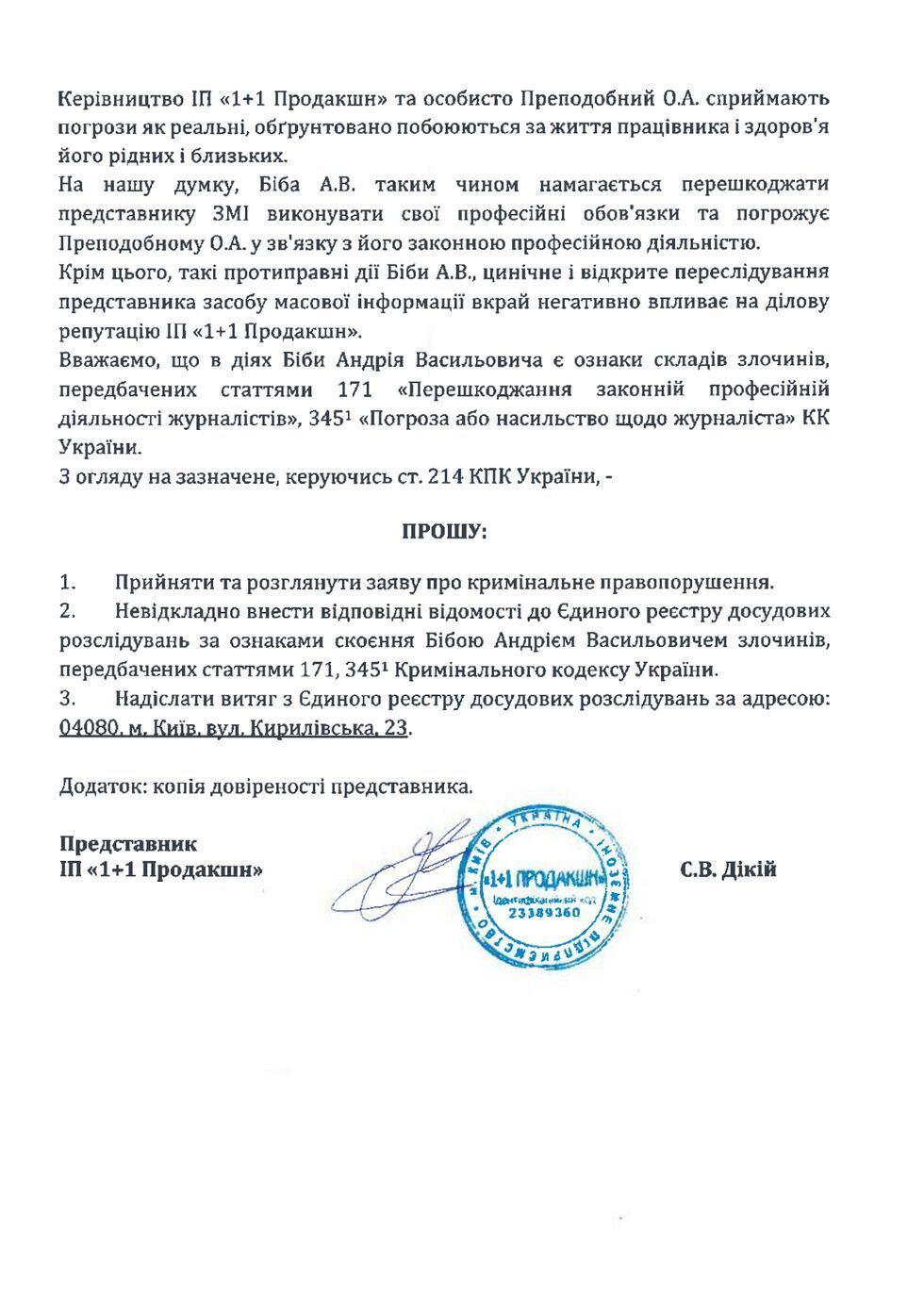 "Ти живеш, як гнида продажна, здохнеш, як паскудна собака, дивуюся твоїй безтурботності", – написав, як стверджують в "1+1", Біба в повідомленні Преподобному.