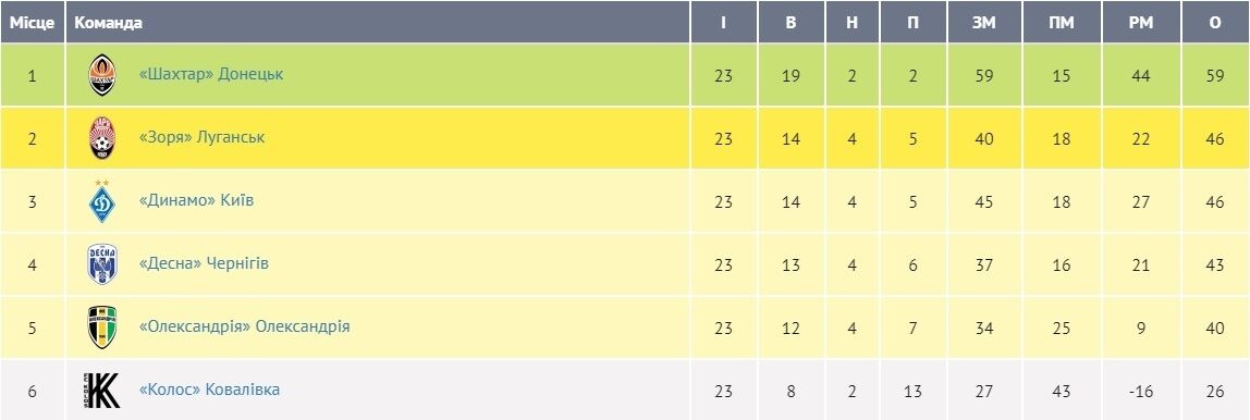 "Зоря" після перемоги над "Шахтарем" у 23-му турі чемпіонату України піднялася на друге місце в турнірній таблиці УПЛ.