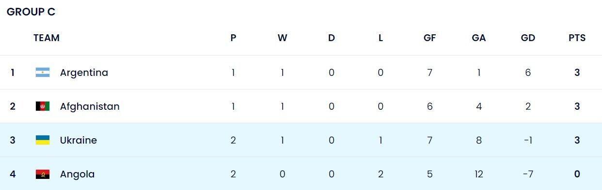 Станом на зараз лідером групи залишається команда Аргентини, Україна посідає у квартеті третє місце.