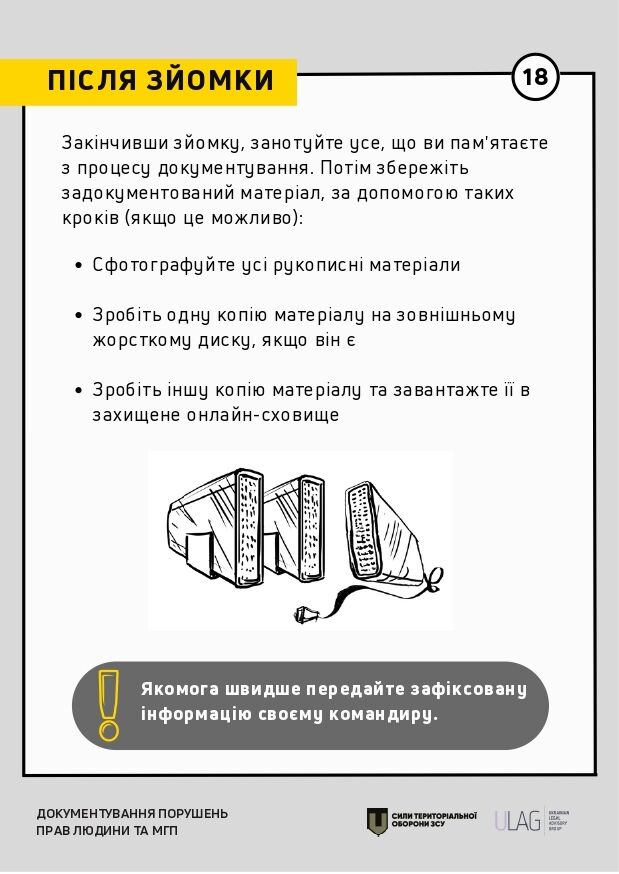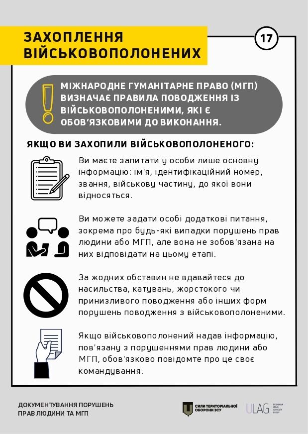 Як правильно документувати порушення прав людини й міжнародного права. Інструкція для Сил територіальної оборони ЗСУ