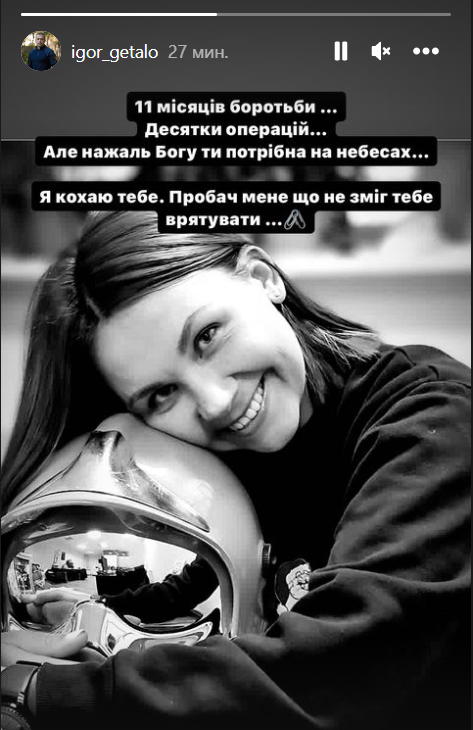 "11 місяців боротьби. Десятки операцій. Але, на жаль, Богу ти потрібна на небесах. Пробач мені, що не зміг тебе врятувати", – написав він.