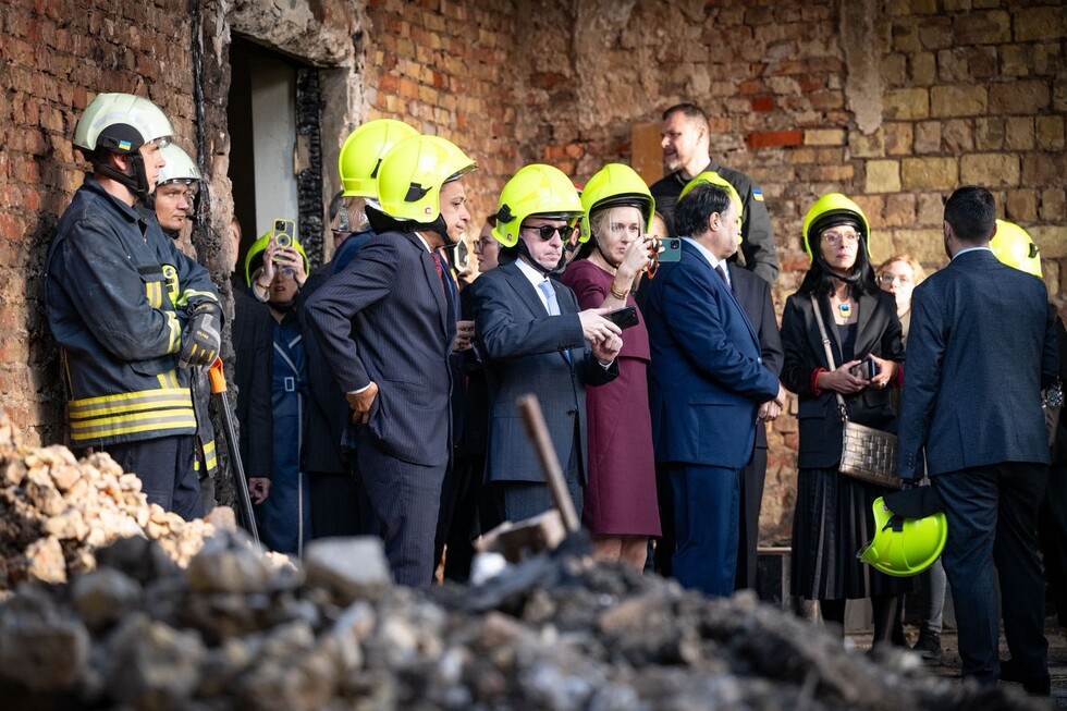 Вони показали послам пошкоджені російським ударом поверхи будівлі Кабміну й поінформували про наслідки однієї з наймасштабніших атак країни-агресора Росії від початку повномасштабної війни.
