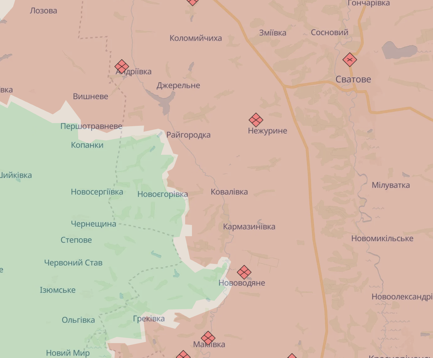 Також на карті моніторингового сервісу DeepState видно, що під контролем сил оборони залишається ділянка в районі Сватового.