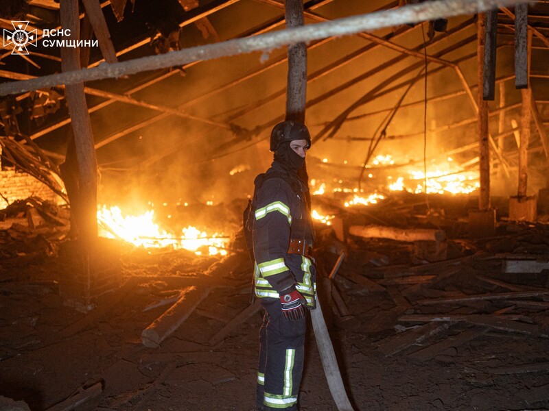 Державна служба України з надзвичайних ситуацій показала в Telegram фото й відео пожежі на об'єкті. Там також поінформували, що зранку всі осередки горіння ліквідували.