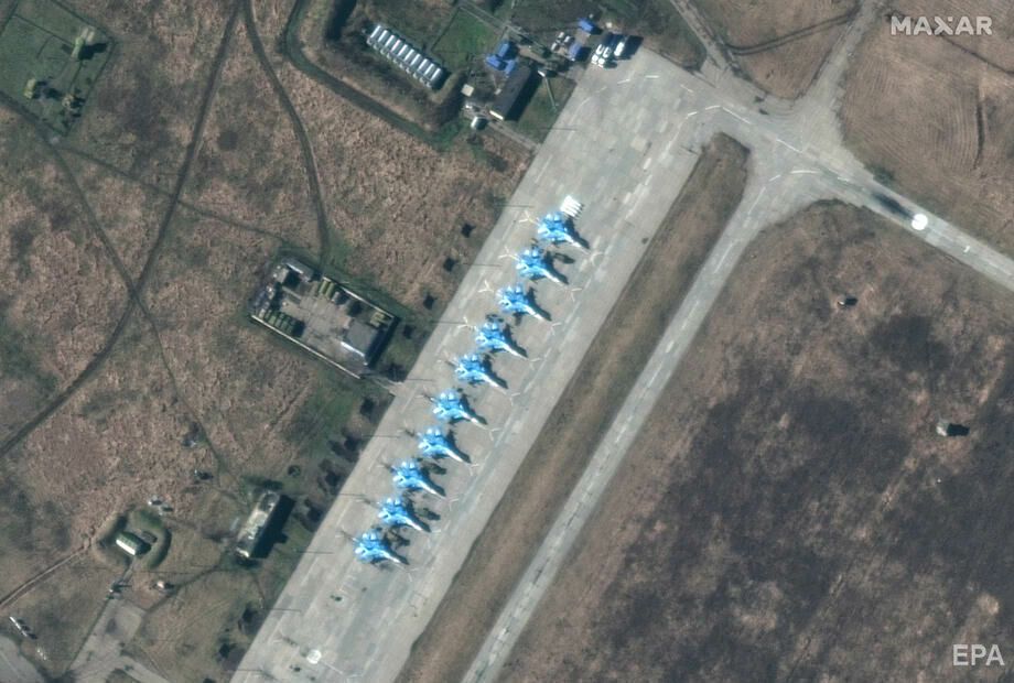 Супутники Maxar Technologies помітили кілька великих підрозділів військ і бойових гелікоптерів, а також нове розгортання винищувачів на передових позиціях.