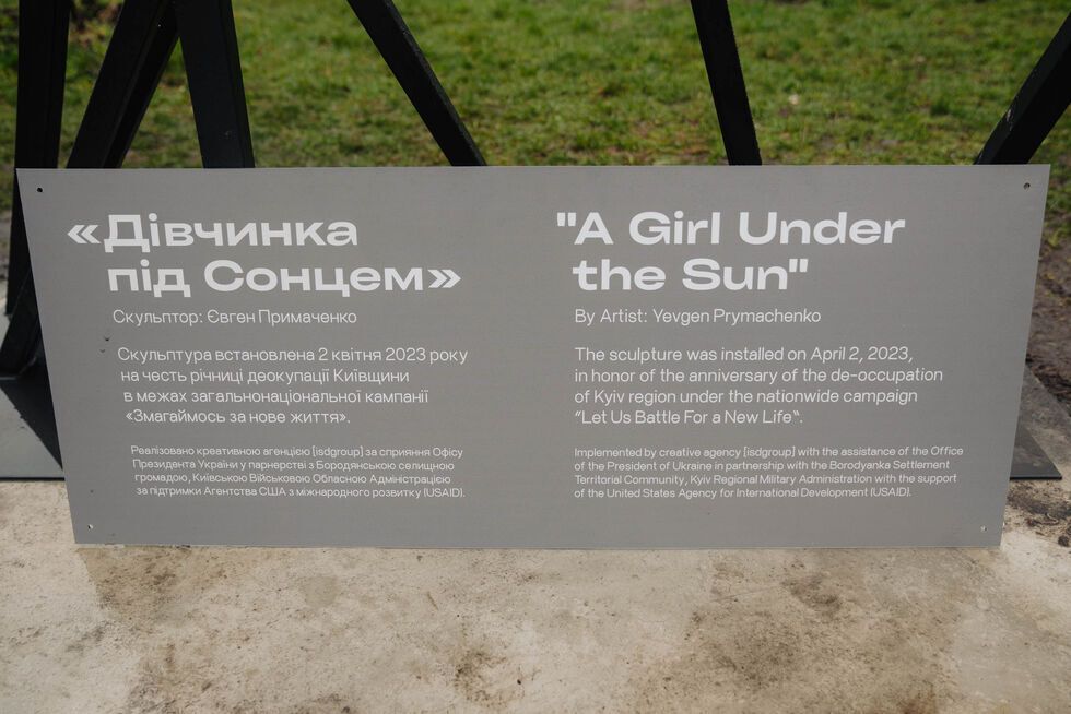 2 квітня, у день звільнення Київської області від російських окупантів у Бородянці відкрили скульптуру "Дівчинка під сонцем", поінформував сайт Офісу президента.