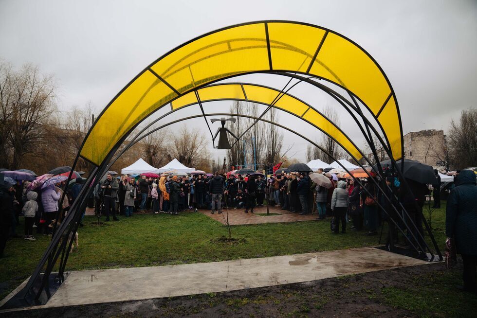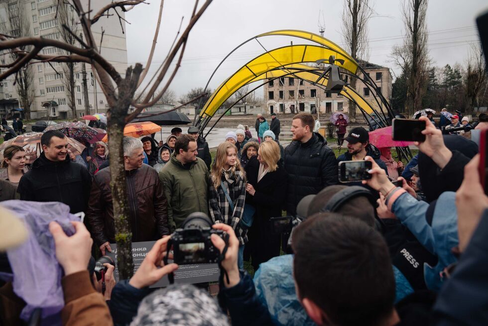 Як ідеться в релізі, чотириметрова скульптура символізує перемогу життя над руйнуваннями, а її арки – спротив окупантам семи районів Київської області та самого Києва.