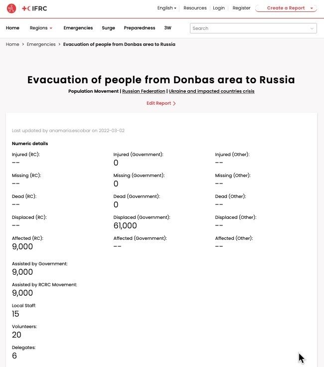Водночас на сайті МКЧХ донедавна була сторінка (зараз її вже видалили) під назвою "Евакуація людей із регіону Донбас до Росії". Згідно з нею, МКЧК брав участь в "евакуації" 9 тис. осіб.