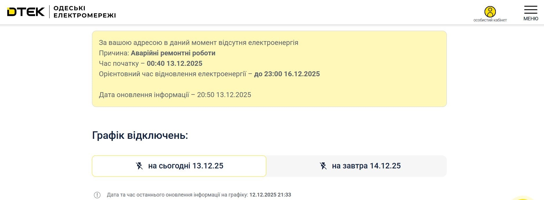 Більшість жителів Одеси – також без світла, води й тепла. У ДТЕК поінформували, що проводять аварійні ремонтні роботи. За попередніми даними енергокомпанії, світла може не бути фактично до 17 грудня.