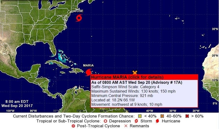 Ураган "Марія" сформувався в Атлантичному океані 16 вересня. 19 вересня ураган досяг максимальної категорії потужності.