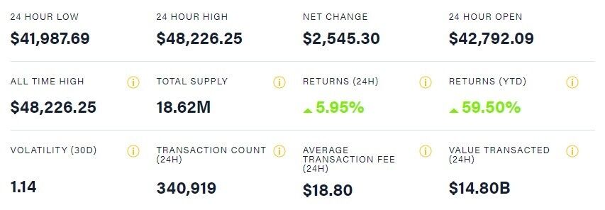 Біткоін встановив новий рекорд, побивши позначку $48 тис.