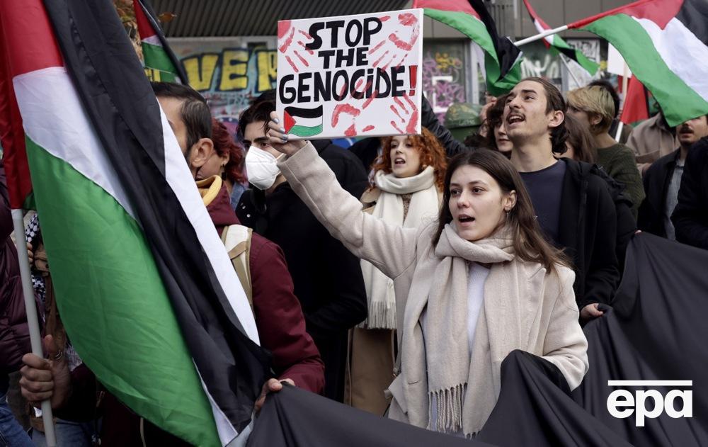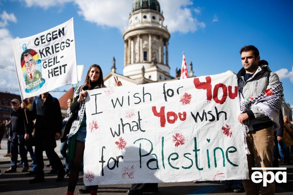 У Німеччині учасники антивоєнного мітингу в Берліні тримали плакати "Проти жаги війни" та "Бажаю вам того самого, що ви бажаєте Палестині". Один із протестувальників ніс транспарант із цитатою засновника WikiLeaks Джуліана Ассанжа: "Якщо війну можна розпочати брехнею, то мир можна розпочати правдою".