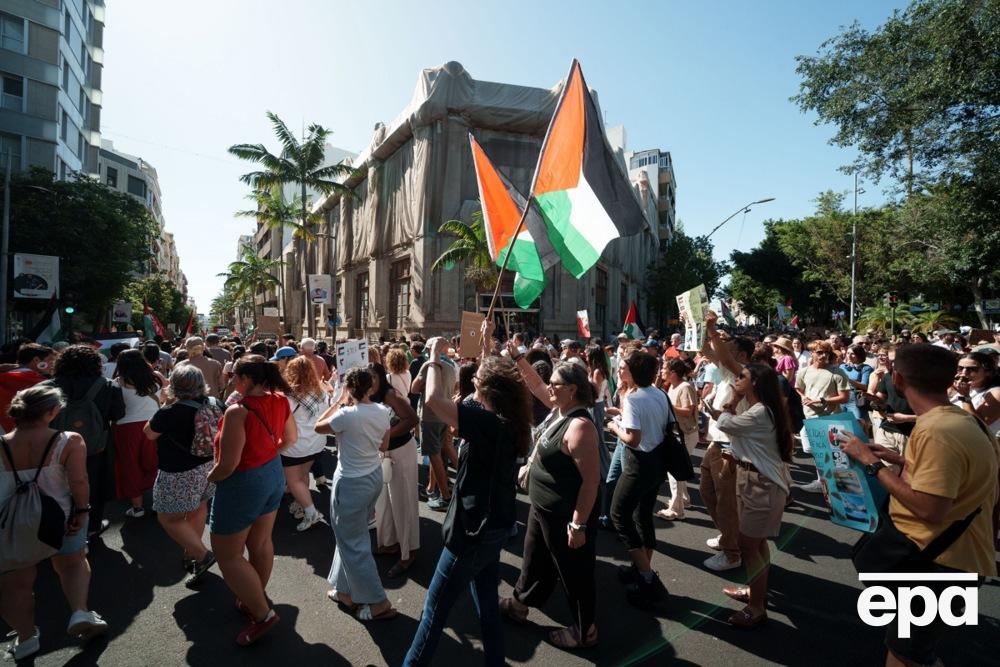 Демонстранти на мітингу підтримки Палестини в Санта-Крус-де-Тенерифе (Канарські острови, Іспанія), 5 жовтня 2025 року. Фото: EPA / Ramon de la Rocha
