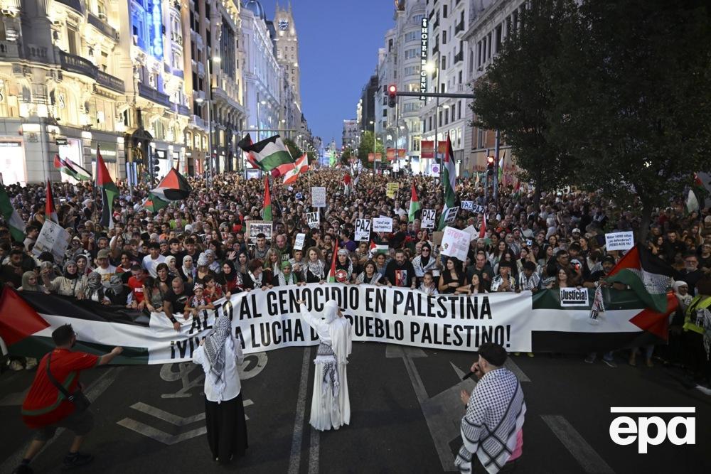 Учасники мітингу на підтримку Палестини в Мадриді (Іспанія), 4 жовтня 2025 року Фото: EPA / Fernando Villar