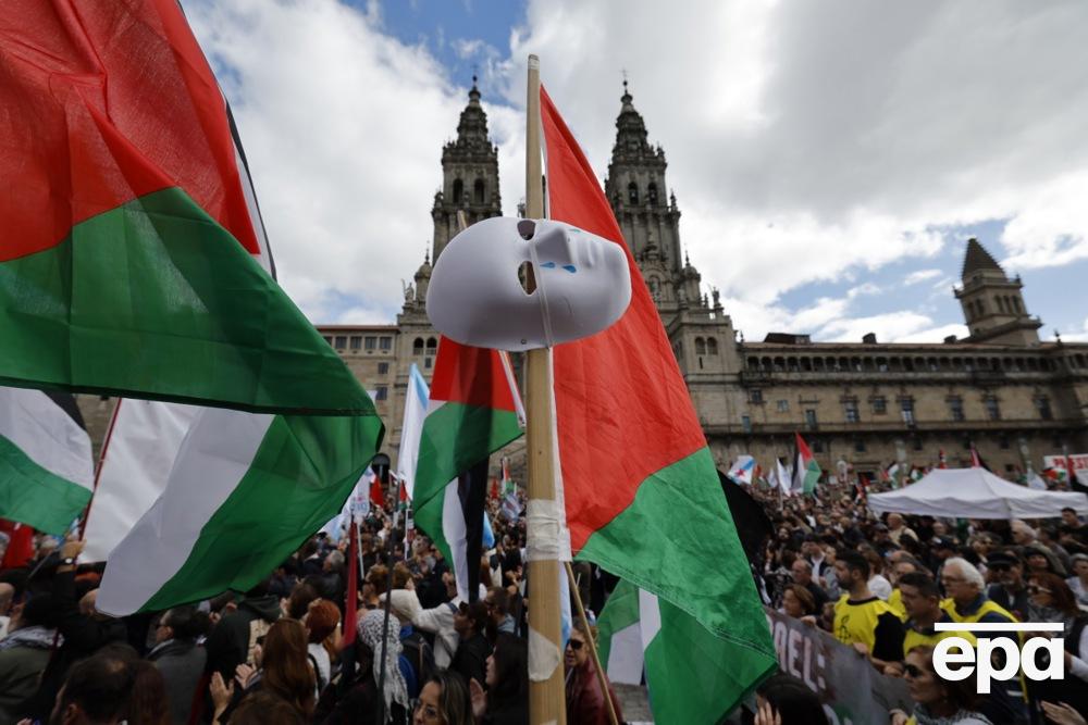 Палестинські прапори на мітингу засудження геноциду й підтримки Палестини в Сантьяго-де-Компостела (Галісія, Іспанія), 5 жовтня 2025 року. Фото: EPA / Lavandeira Jr.
