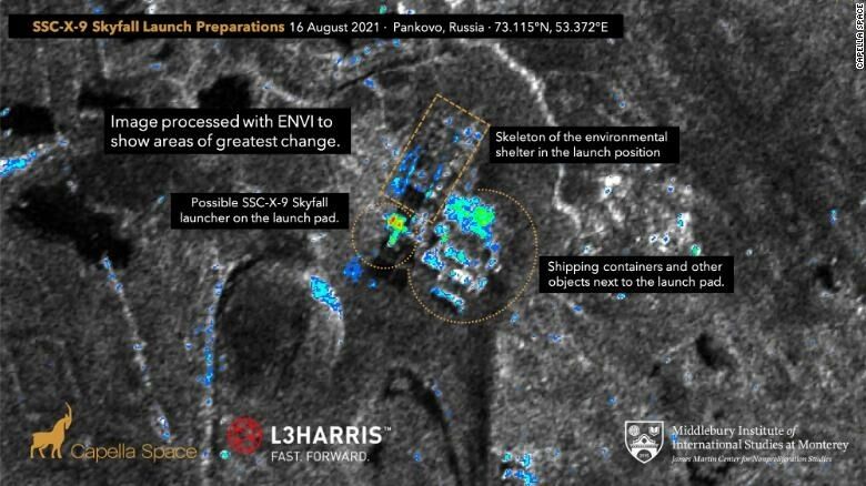 Фотографії зробила із супутника протягом літа комерційна компанія Capella Space. Їх проаналізували експерти з Мідлберійського інституту міжнародних досліджень. Фахівці дійшли висновку, що активність, зафіксована на знімках, дає "переконливі докази того, що Росія готується до випробувань крилатої ракети з ядерною установкою" на відомому стартовому майданчику Паньково, розташованому неподалік від Полярного кола.