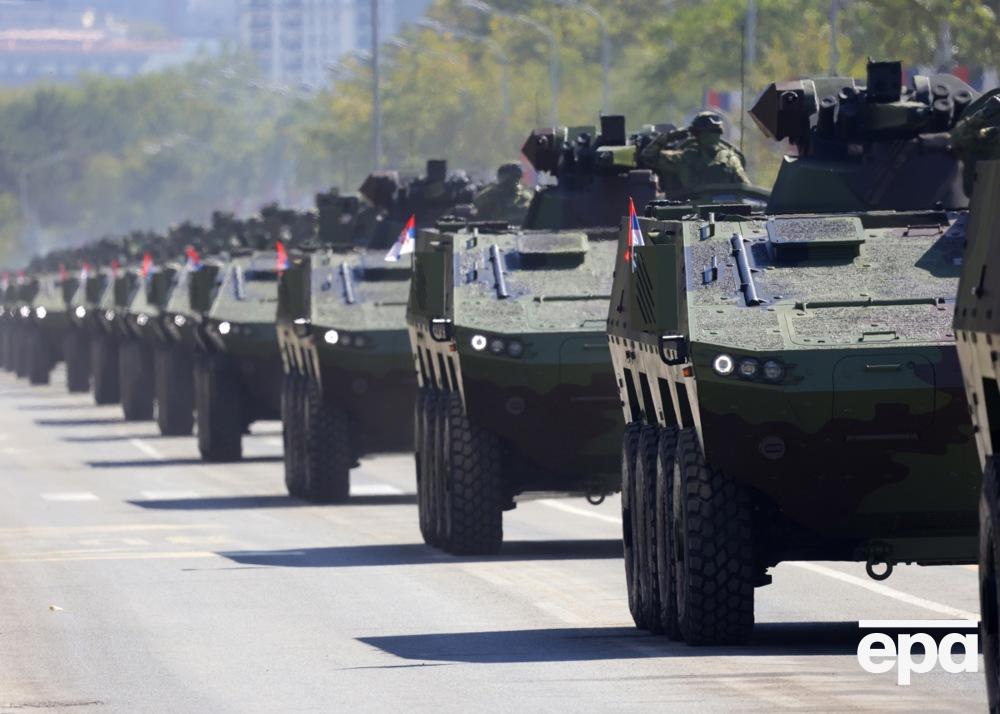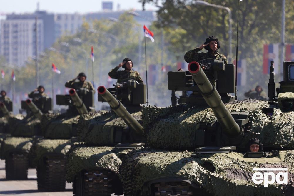 На параді також показали танки, надані Росією, і зенітні установки з Китаю. Як зазначає Euronews, це свідчить про тісні відносини Белграда з Москвою й Пекіном, незважаючи на те, що президент Сербії Александр Вучич та уряд під керівництвом Сербської прогресивної партії неодноразово заявляли, що хочуть, щоб Сербія вступила в Європейський союз.