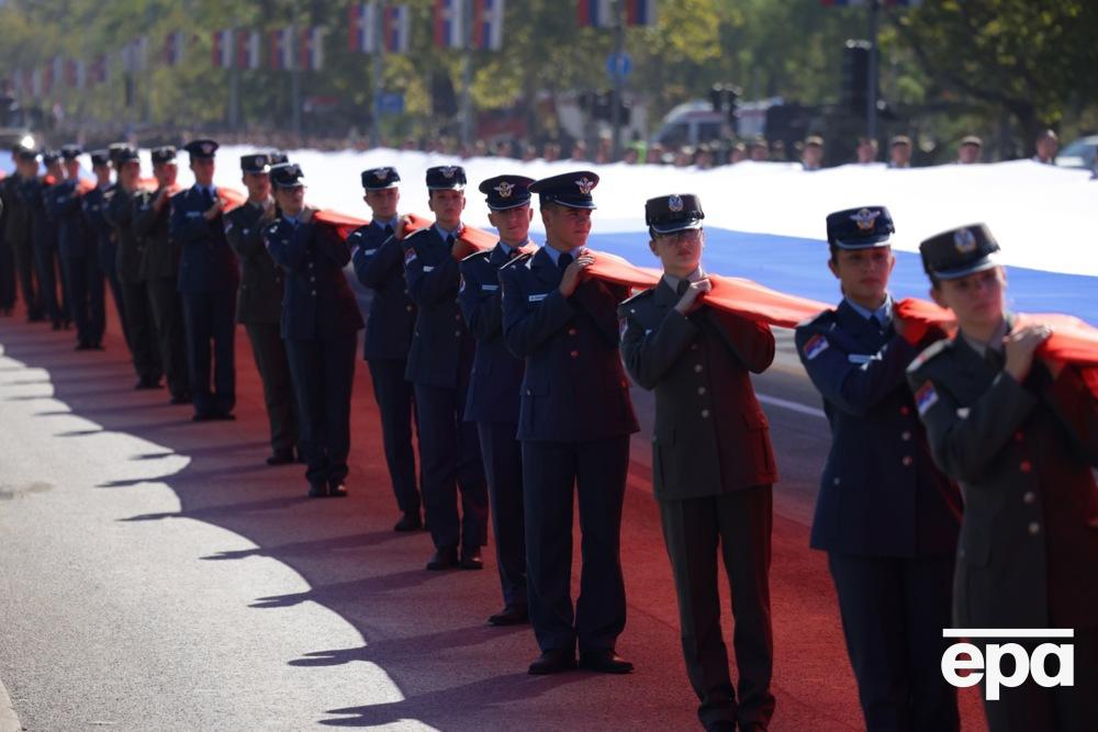 10 тис. військових пройшли маршем районом Нового Белграда, натовпи людей розмахували національними прапорами, а над їхніми головами пролітали літаки. На параді була техніка як сербського виробництва, так і доправлена з-за кордону, зокрема ракетні установки з Ізраїлю й безпілотники, куплені в Об'єднаних Арабських Еміратах. Продемонстрували французькі багатоцільові винищувачі Rafale, яких Сербія замовила 12. Також на параді показали універсальну ракетно-артилерійську платформу ізраїльського виробництва, здатну запускати цілу низку боєприпасів із різним корисним навантаженням і дальністю до 300 км, що означає, що вона може досягти більшості балканських столиць.