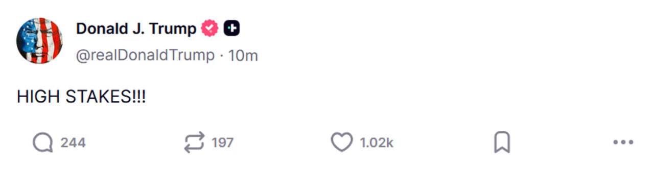 "Ставки високі!" – коротко написав Трамп.