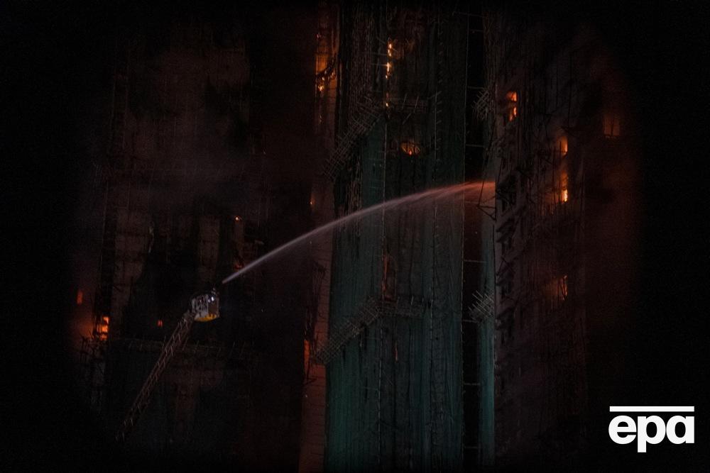 Полум'я охопило бамбукові риштування на території району. На місці події високо в небо піднялися величезні клуби темного диму, а полум'я швидко поширилося на сім із восьми кварталів району.