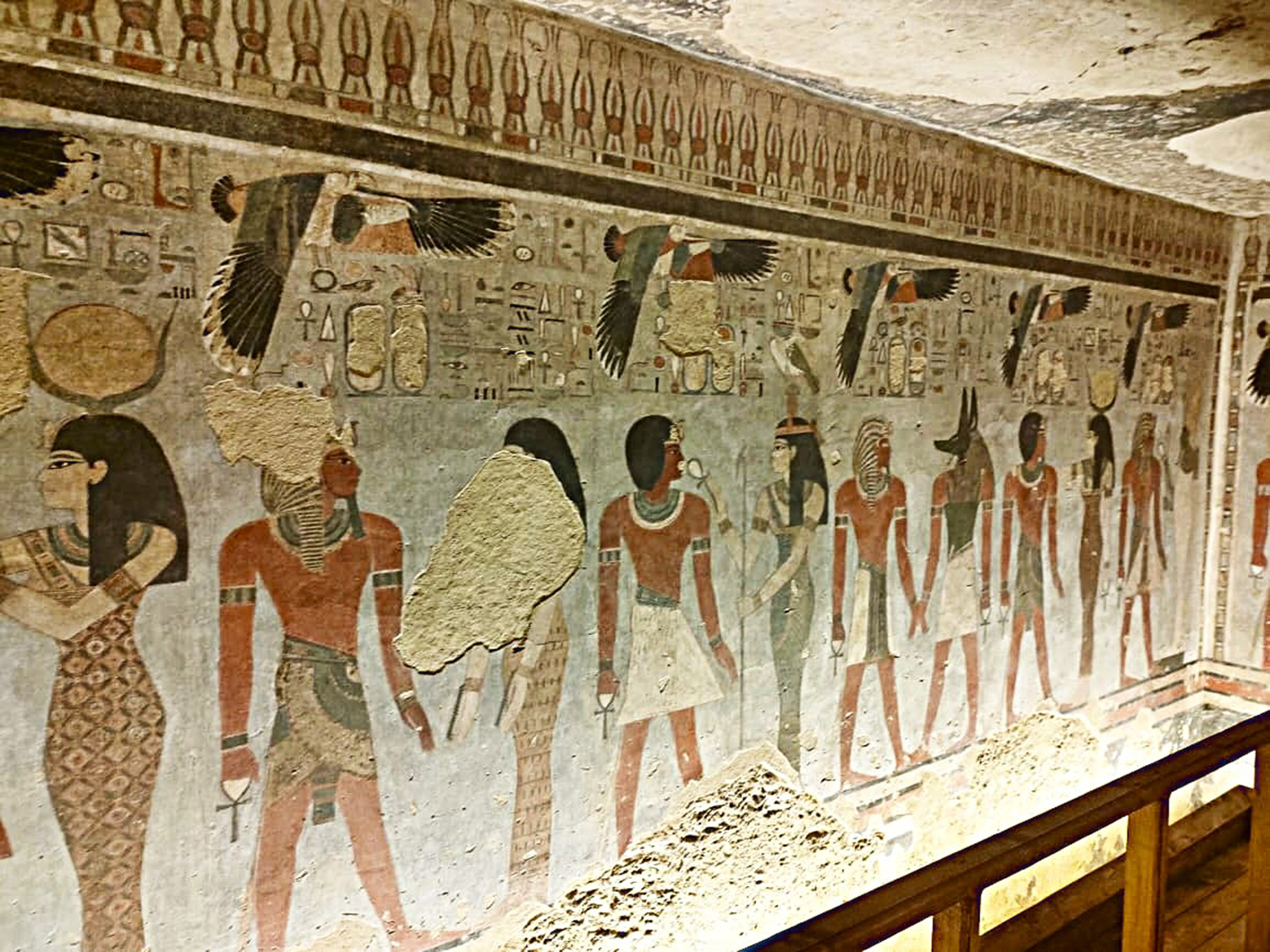 Згідно із проєктом реставрації, який очолює Японія, у гробниці відновили на стінах зображення Аменхотепа III і його дружини.