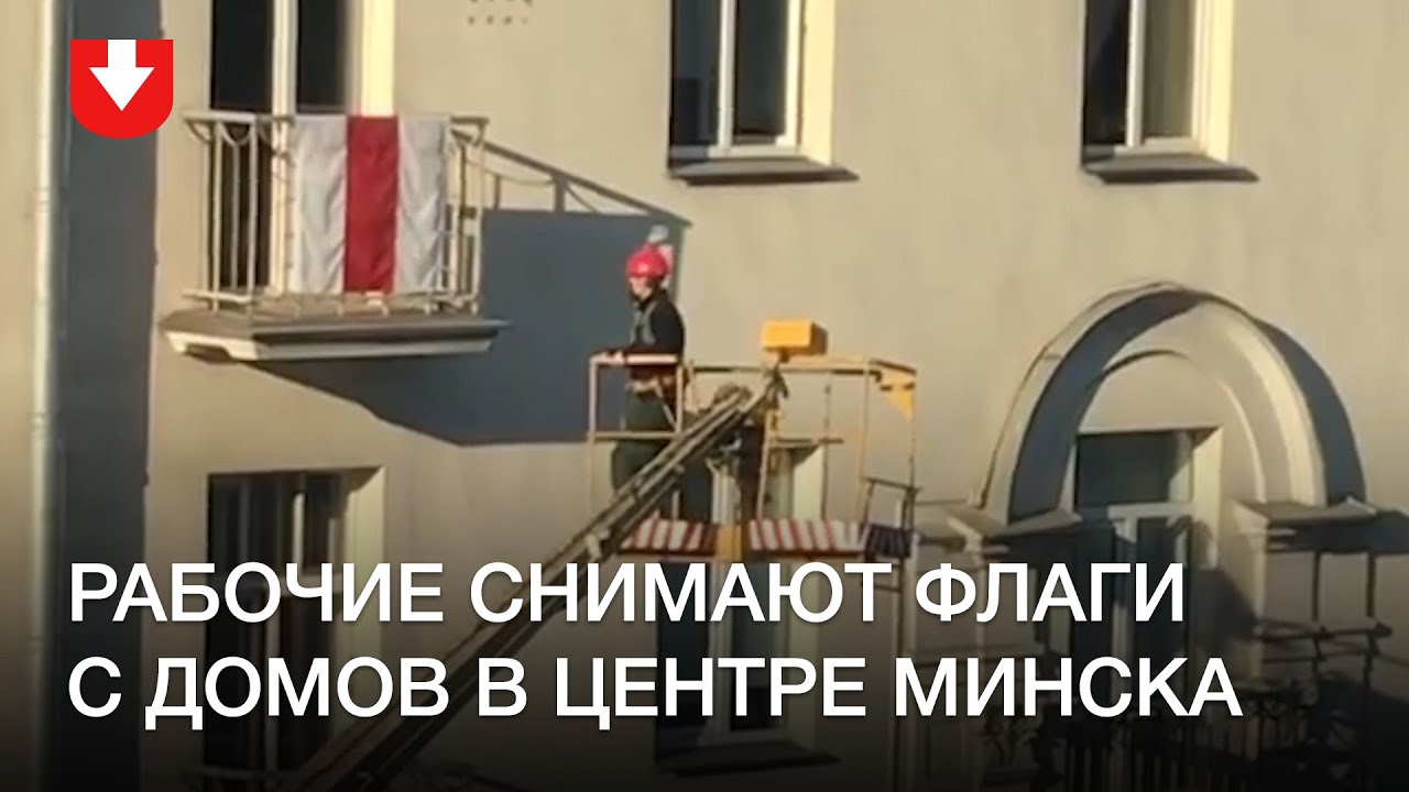 У центрі Мінська із балконів громадян робітники знімають за допомогою автовишок біло-червоно-білий прапор Білорусі, який був символом країни у 1918–1919 і 1991–1995 роках. Відео опублікувало 7 серпня TUT.BY. Видання зазначає, що в міліції те, що відбувається, пояснюють реакцією на заяву про символіку, яка "ображає моральні принципи і погляди".