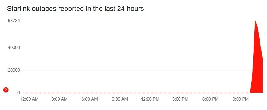 Кількість скарг на роботу Starlink у світі перевищила 63 тис. о 22.27 за київським часом.