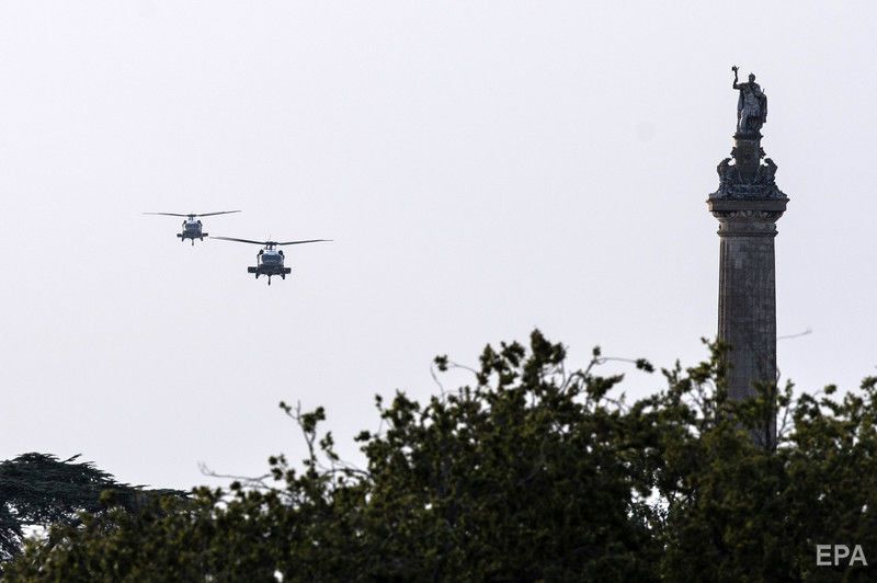 "Думаю, мене тут дуже люблять". Трамп прилетів до Британії на тлі протестів. Фоторепортаж