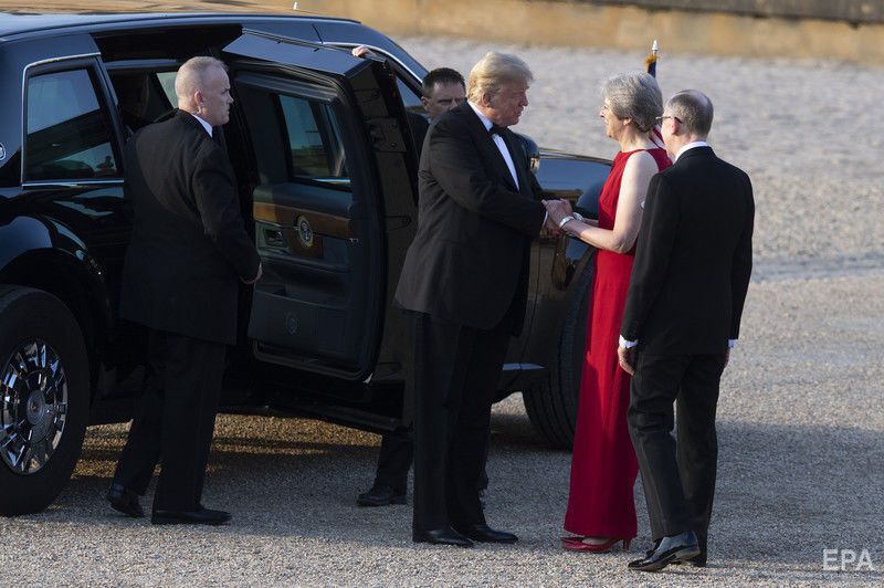 Президент США Дональд Трамп разом із дружиною Меланією 12 липня прибув у Лондон. Про це повідомила "Русская служба BBC". Це перший візит глави Білого дому до Великобританії після обрання у 2016 році. Прем'єр-міністр Британії Тереза Мей зустріла Трампа у Бленгеймському палаці у графстві Оксфордшир. У цей час у Лондоні сотні людей протестували проти контактів з американським лідером. "Я думаю, мене тут дуже люблять, думаю, що британці згодні зі мною [у питанні] про імміграцію", – заявив Трамп журналістам. 13 липня президент США і Мей побувають на навчаннях британських військових і проведуть переговори у заміській резиденції Чекерс у графстві Бакінгемшир. Потім Трамп побачиться з королевою Єлизаветою II у Віндзорському замку і ввечері того самого дня вирушить до Шотландії, де пробуде до 15 липня в гольф-клубі Trump Turnberry, який йому належить. Звідти президент США вилетить у Гельсінкі на переговори із главою Кремля Володимиром Путіним.